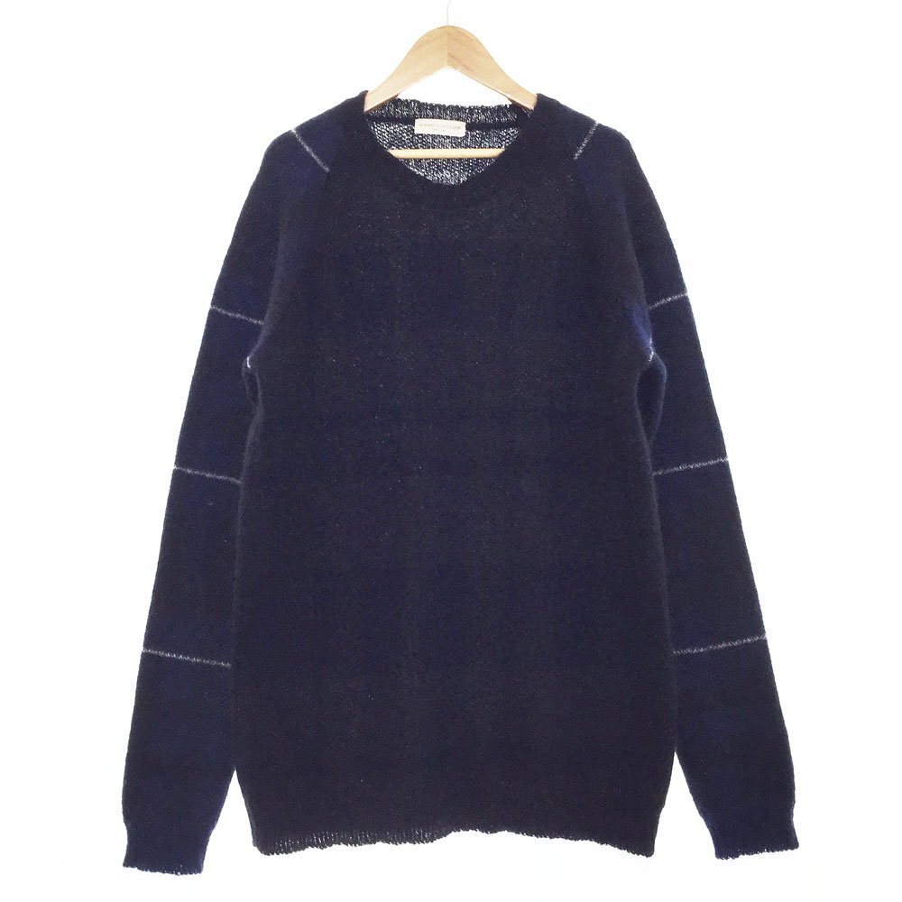 - ★ROBERTO COLLINA ロベルトコリーナ チェック長袖 モヘアウール クルーネックニット レディースL ブラック×ネイビー×ホワイト 1BB/93988