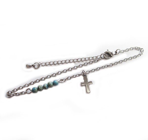 - ステンレスチェーンアンクレット アフリカンターコイズ 約3.6mm 小豆幅2mm 27cm(23+4cmアジャスター)