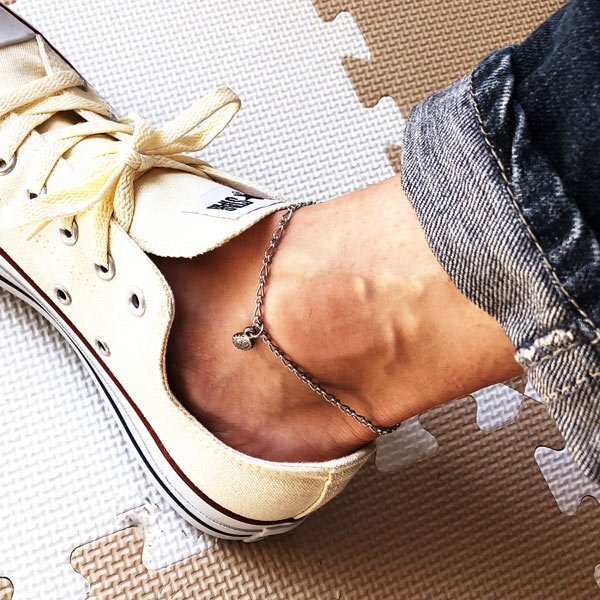 - スマイルチャーム付き ステンレスフィガロチェーン アンクレット 27cm(23+4cmアジャスター) FN67