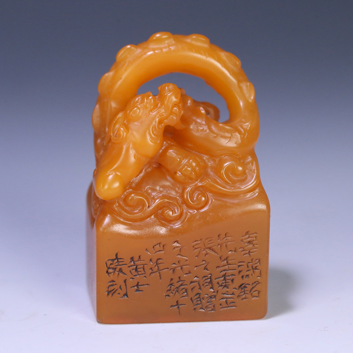- ▽鴻▽清朝時代 寿山石 田黄石彫 魑龍鈕印章 黄士陵作 時代木箱付き 時代物 中国古美術 骨董品