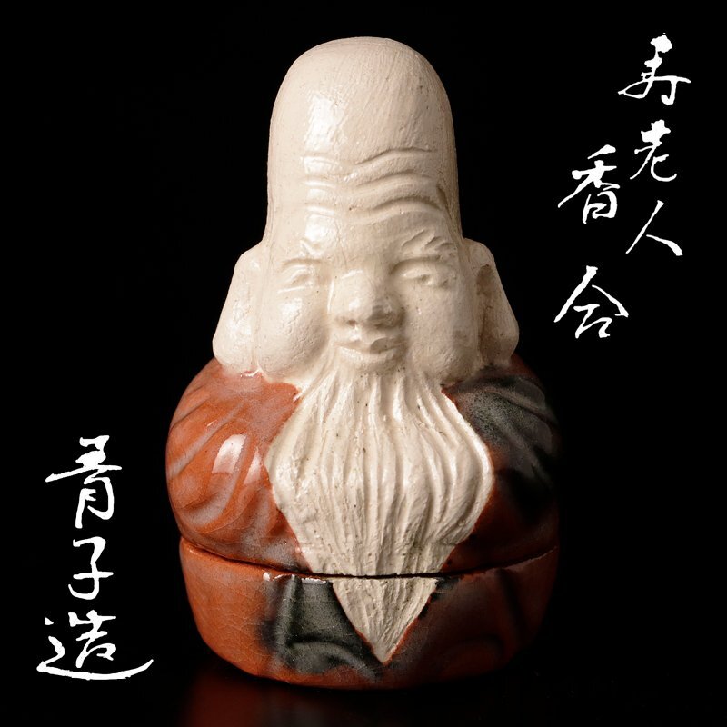 - ★【古美味】檜垣青子造 寿老人 香合 茶道具 保証品 EO3s