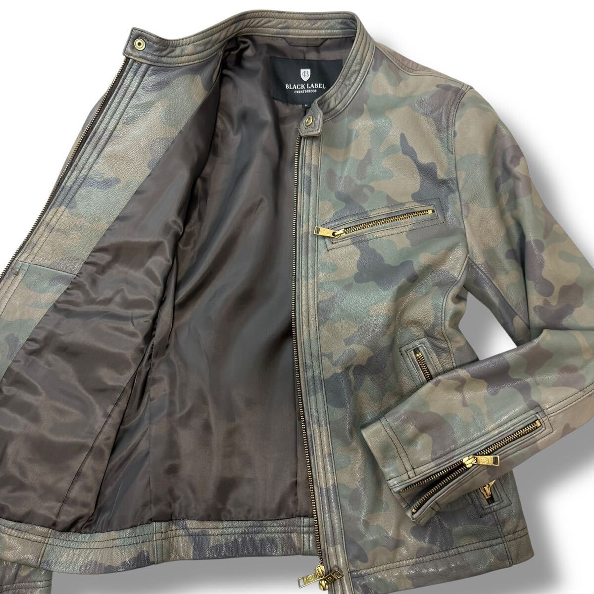 > 1207 希少デザイン◎ブラックレーベルクレストブリッジ レザー シングルライダースジャケット 本革 迷彩柄 カモフラ BLACKLABELCRESTBRIDGE