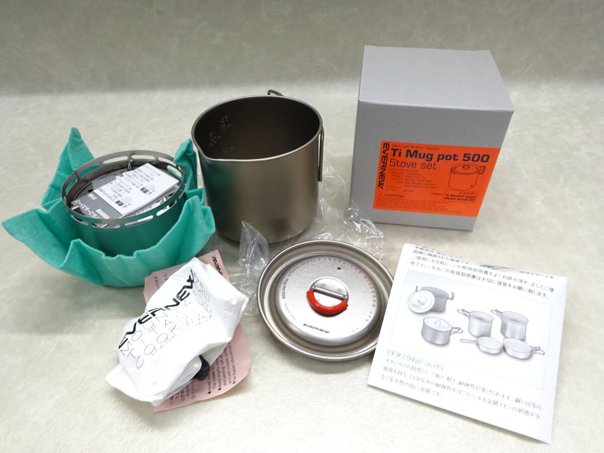 > #45515 新品未使用♪ EVERNEW エバニュー Ti Mug pot 500 Stove set ECA538 マグポット アルコールストーブ スタンド