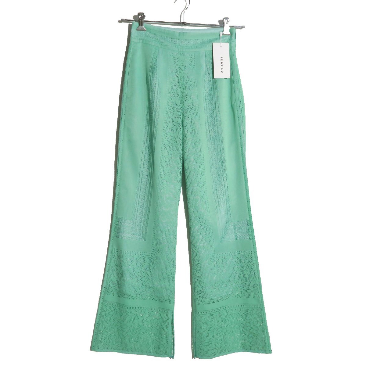 > 【タグ付・新品・定価23,100円】FRAY I.D パネルレースフレアパンツ FWFP224201 size1 グリーン フレイアイディー