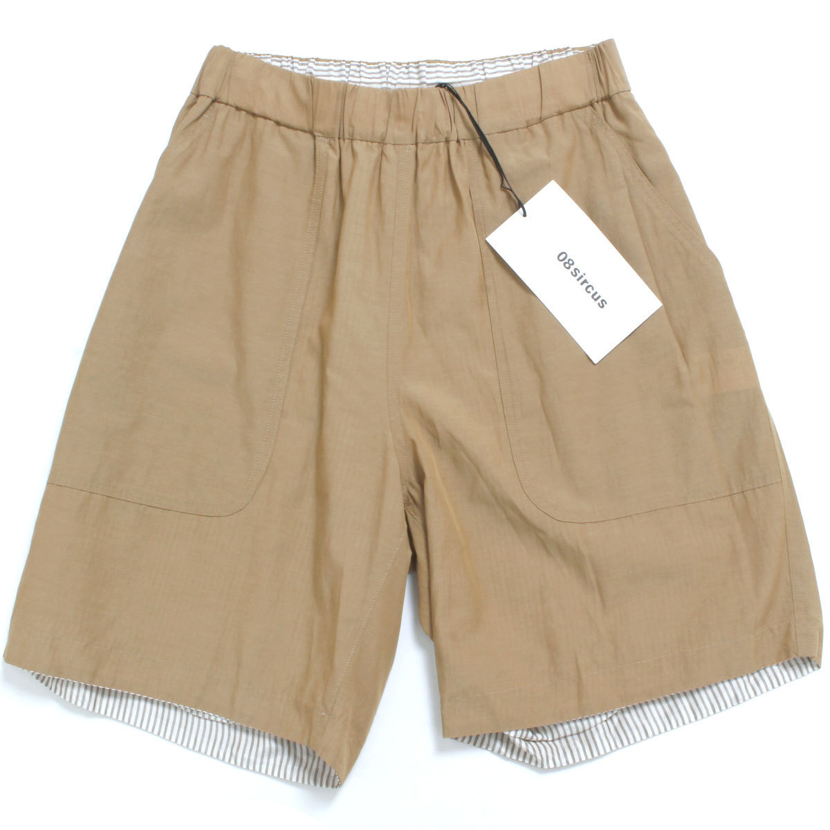 > 新品 08sircus CO/CU BROAD STRIPE REVERSIBLE SHORTS 定価39,000円 size4 キャメル S19SM-PT03 08サーカス ショートパンツ