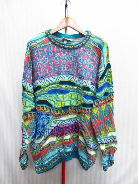 > COOGI オーストラリア製 クージー 3Dニット 90sヴィンテージ メンズL カラフル柄デザイン 立体デザイン ウールセーター 派手柄10142