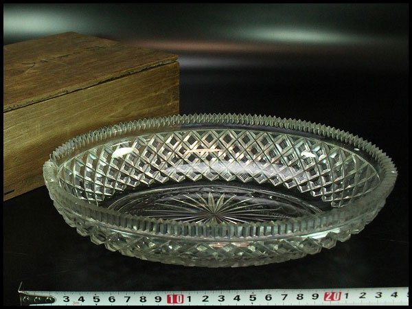 - 【金閣】時代 切子 楕円形 鉢 27cmx18.5cm 旧家蔵出 送料無料(LC671)