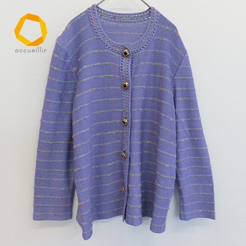 【ブランド】くらら【アイテム】ニット カーディガン【表記サイズ】-【平置き実寸】肩幅:約 42cm袖丈:約 55cm身幅:約 50cm着丈:約 57cm【状態】目立った傷汚れなし【備考】-【色】パープル系 紫系 ミックス【素材】画像をご参照ください。★当店の商品はすべてリユースアイテムとなります。特質上、些細なダメージは記載しておりませんので着用に問題のない使用感、着古した雰囲気などはご了承くださいませ。キーワード/アクイール/古着/used/ビンテージ/ヴィンテージ/昭和/レトロ/ハタケヤマ/シルク/金ボタン