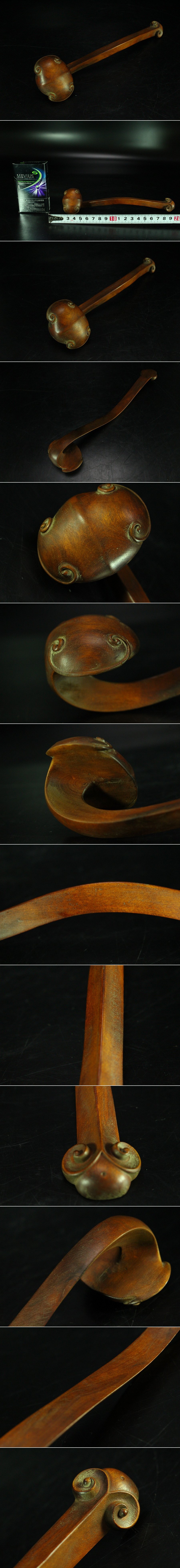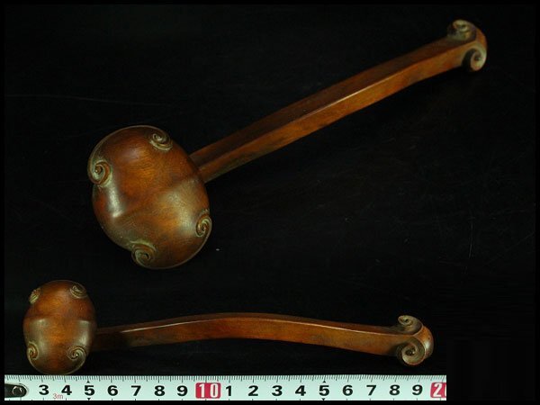 - 【金閣】中国美術 黄楊木 柘植 刻 如意 仏教 法具 全長20.5cm 旧家蔵出 送料無料(HA493)