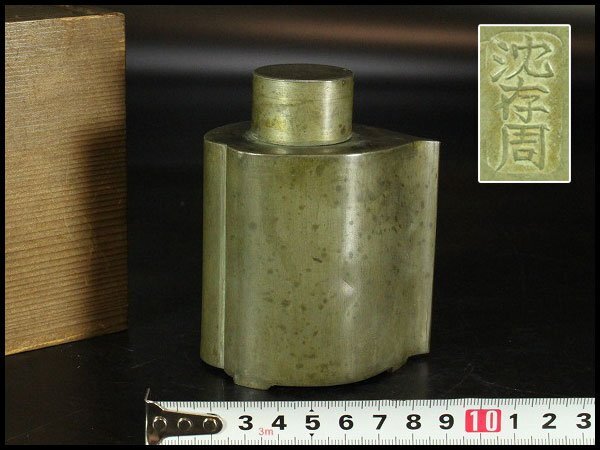 - 【金閣】煎茶 唐物 沈存周 桃形 茶入 時代物 旧家蔵出 送料無料(XA881)