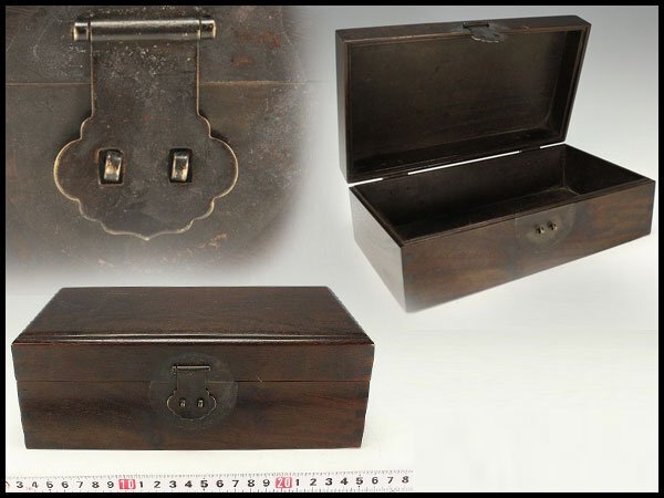 - 【金閣】中国美術 紫檀 箱 2.5cmx13.5cm 旧家蔵出 送料無料(HA479)