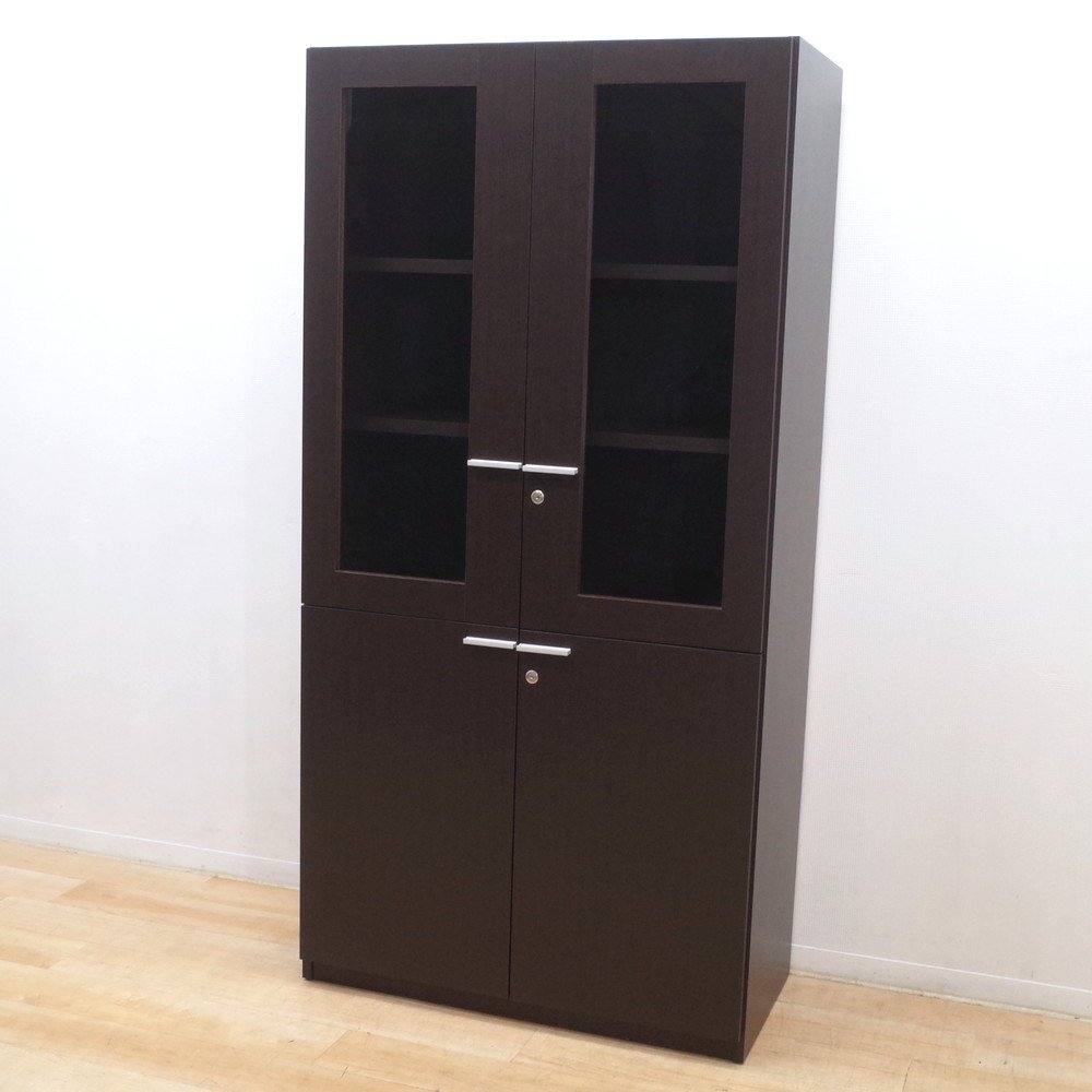 - イトーキ XGシリーズ 役員用キャビネット 上下書庫 HXG-189HG-49 ガラス扉 両開き ブラウン 収納 応接家具 鍵有 KK16245 中古オフィス家具