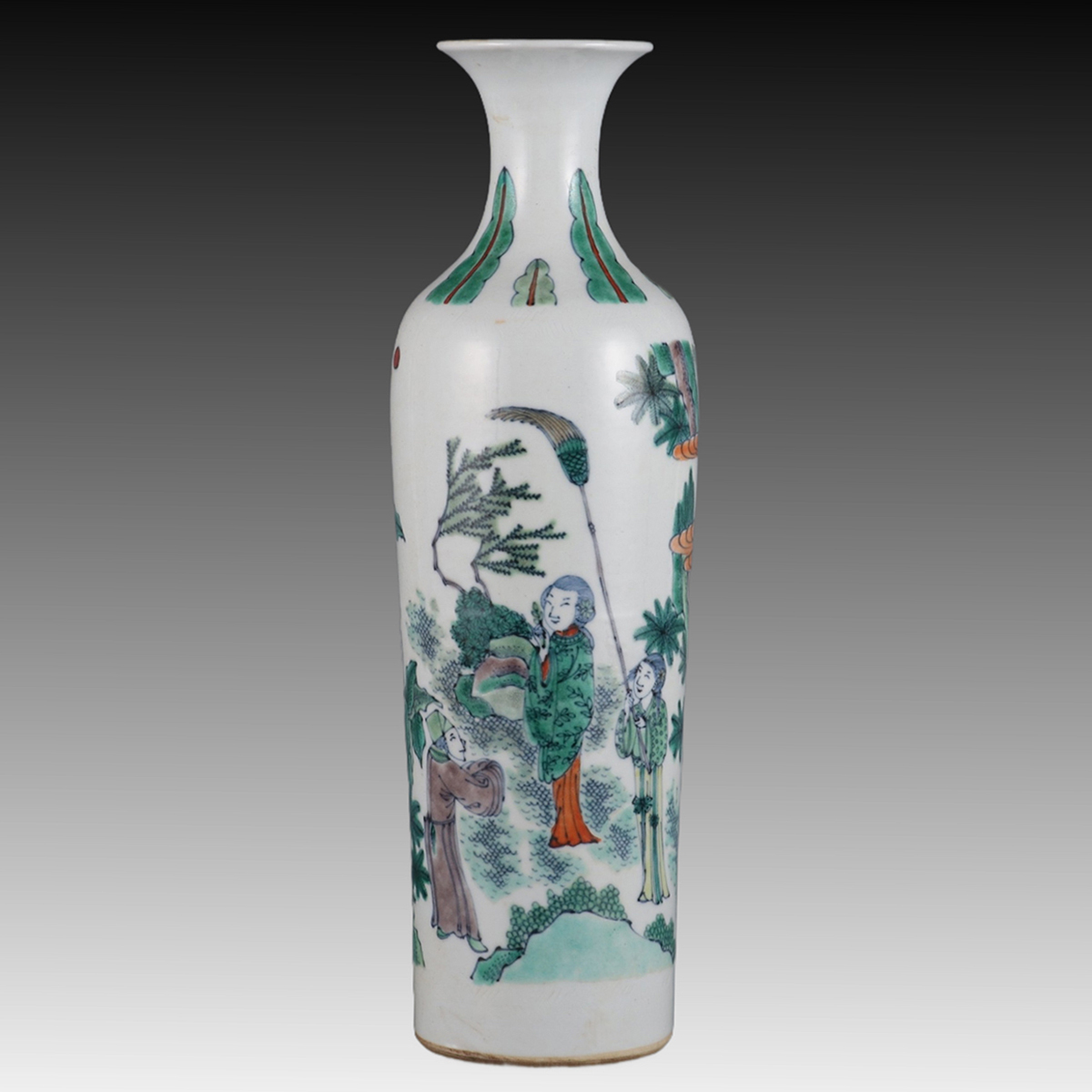 - ▽鴻▽清時代 陶磁器 斗彩人物故事紋筒瓶 清康熙年製款 箱付 時代物 中国古美術 骨董品