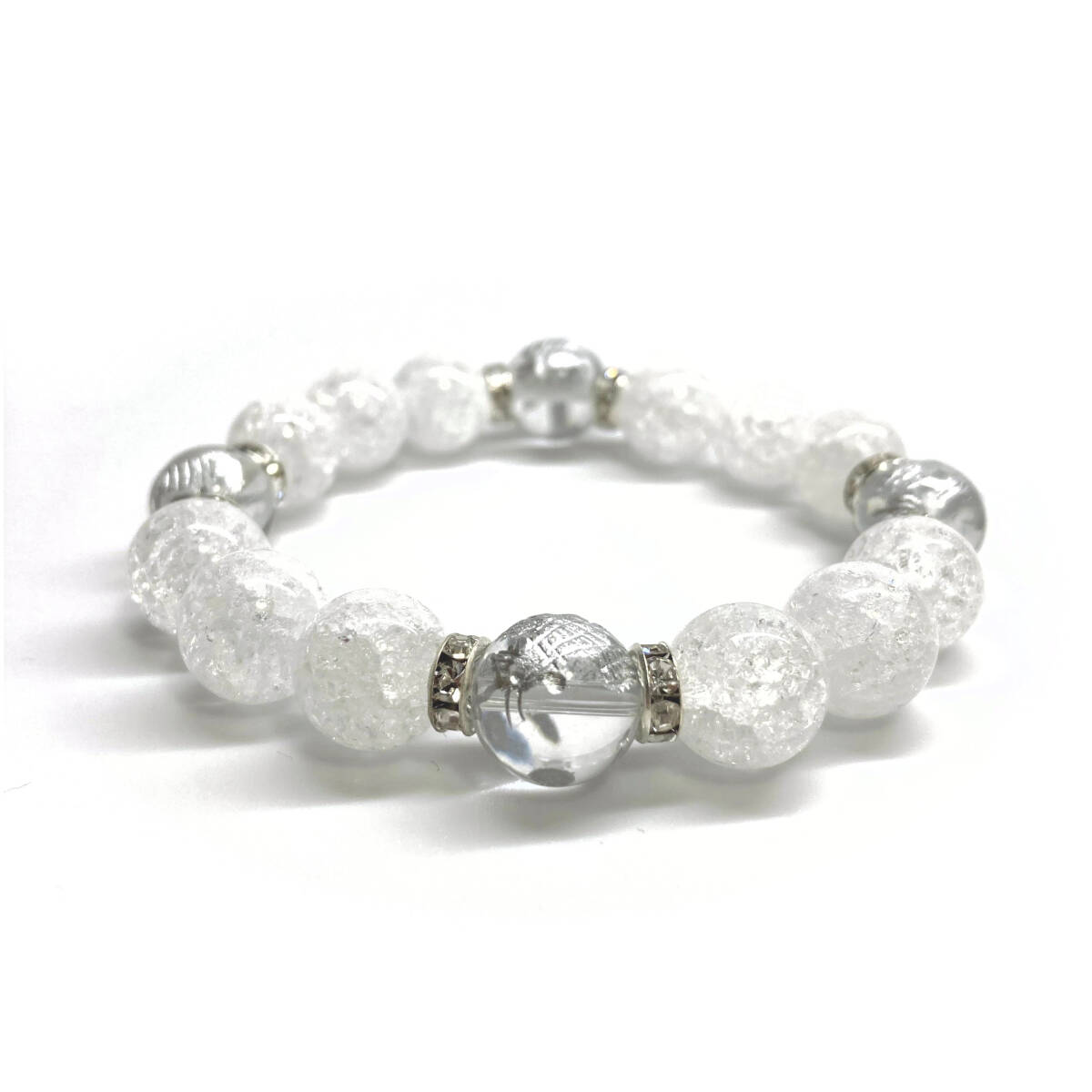 - 四神獣銀彫水晶×クラック水晶 12mm パワーストーン ブレスレット天然石 青龍 白虎 玄武 朱雀 運気上昇 お守り 金運 四神獸 四神相応 S