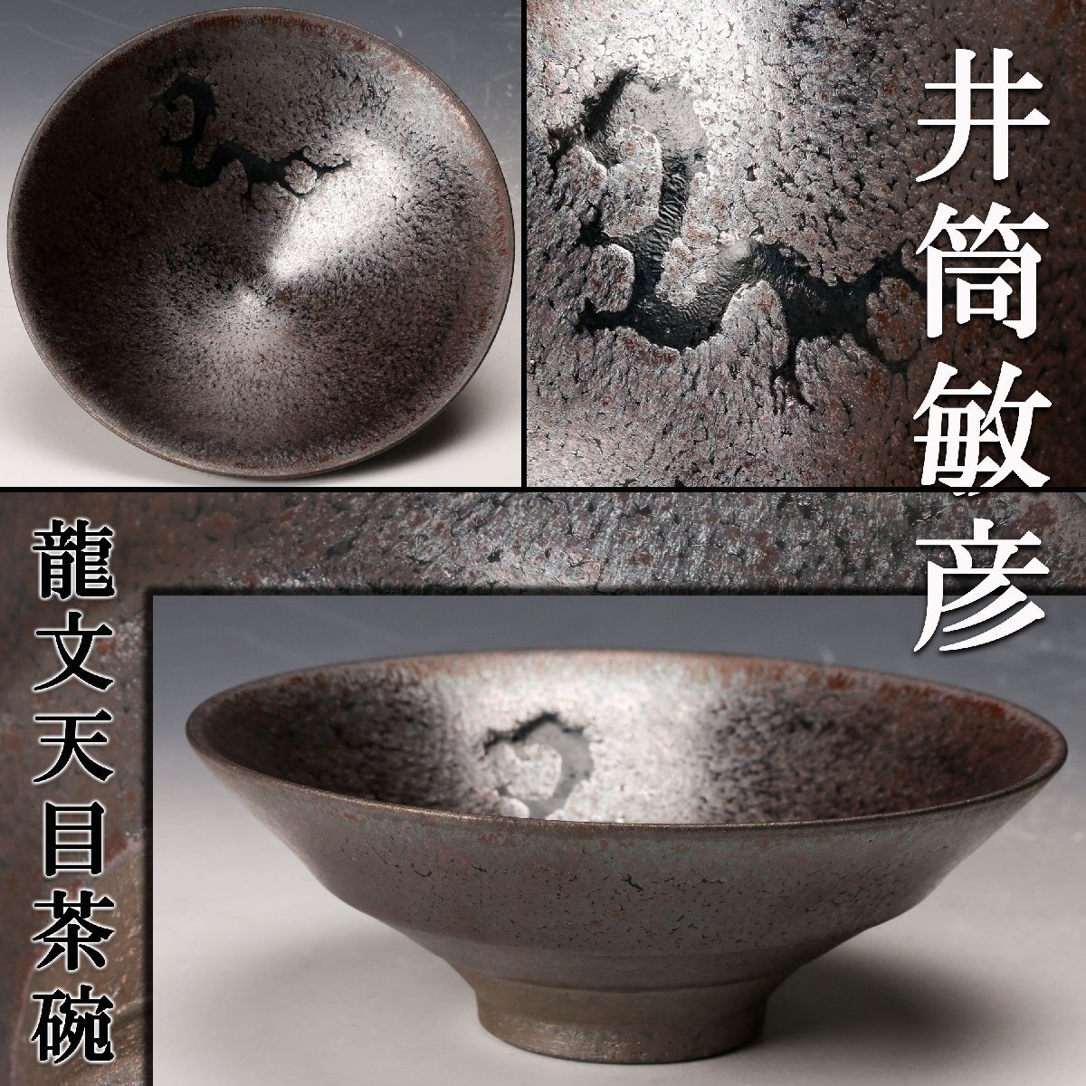 【佳香】井筒敏彦 釉薬の奇跡、天目の輝き 龍文天目平茶碗 茶道具 本物保証