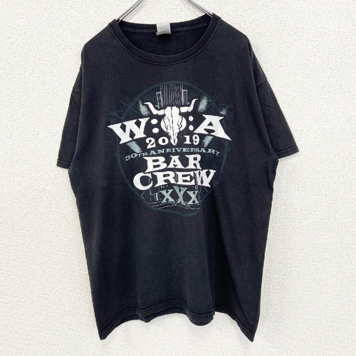 > 古着 used FRUIT OF THE LOOM 半袖プリントTシャツ BAR CREVY クルーネック 黒 XLサイズ