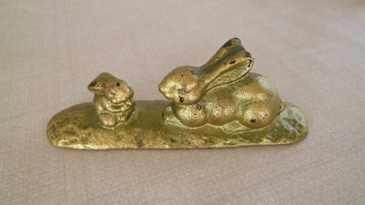 - ☆ 銅・鉄器製 うさぎ 文鎮/ 文鎮 書道具 兎 中古品