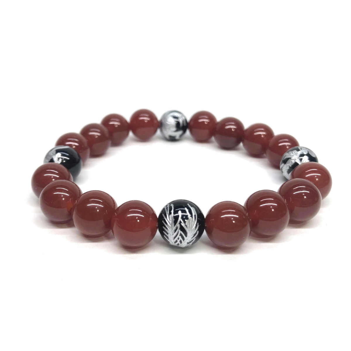 - 10mm 四神獣銀彫オニキス×赤瑪瑙 パワーストーン ブレスレット天然石 運気上昇 開運 金運 恋愛運 青龍 白虎 玄武 朱雀 シンプル ☆