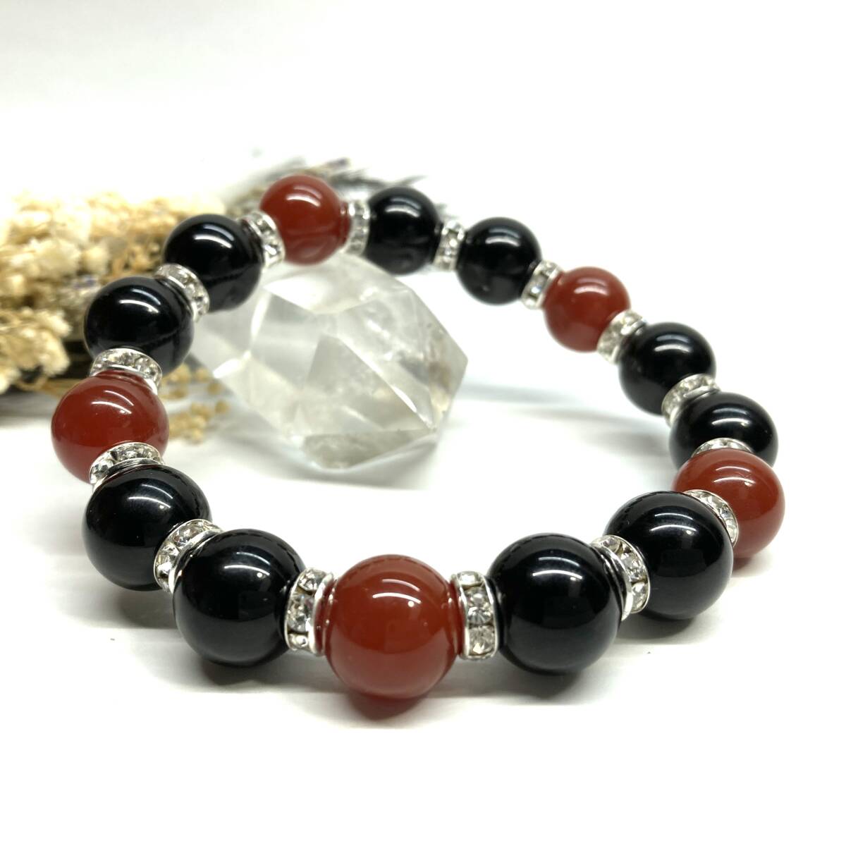 - モリオン&赤瑪瑙 パワーストーン ブレスレット 天然石ブレス (シルバー) 12mm 幸運 開運 メンズ 男性