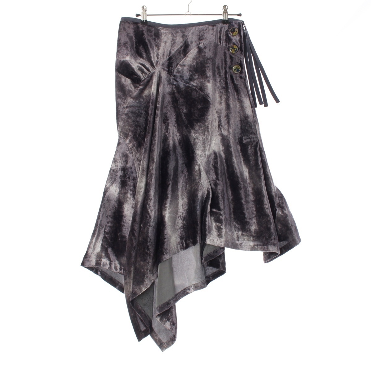 - イッセイミヤケ 2005AW FLOWER PRESS ボタン ベロア 平面 変型 スカート IM53FG525 グレー 2【中古】