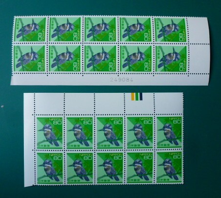 - 財務省銘より 80円 ヤマセミ カラーマーク上と計数 各10枚ブロク 未使用 完美品 H-4-7s