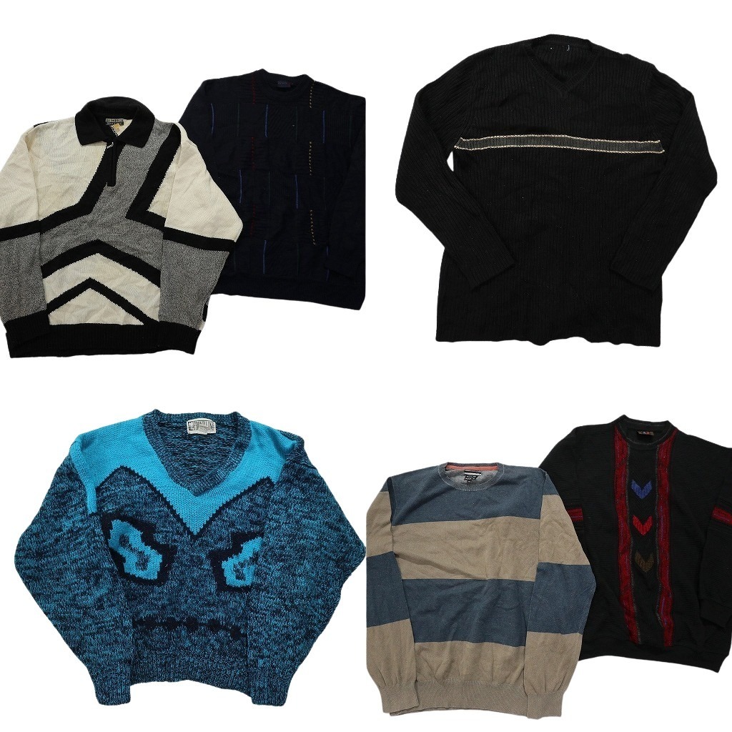 - 古着卸 まとめ売り ニットMIX セーター 6枚セット (メンズ L /XL ) Vネック ライン リブニット アート系 モノトーン NC3589 1円スタート