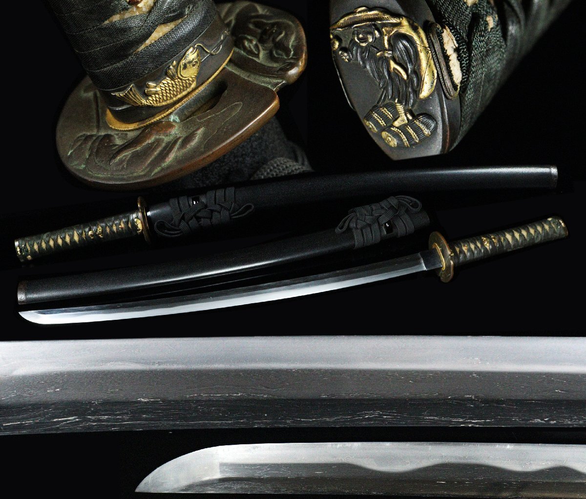 - 【ASAHI】上品な拵え入り脇差 無銘 54.0cm 匂い口締まる互の目乱れ美しく見応え抜群 鑑定が楽しみな一振り[71012tt]
