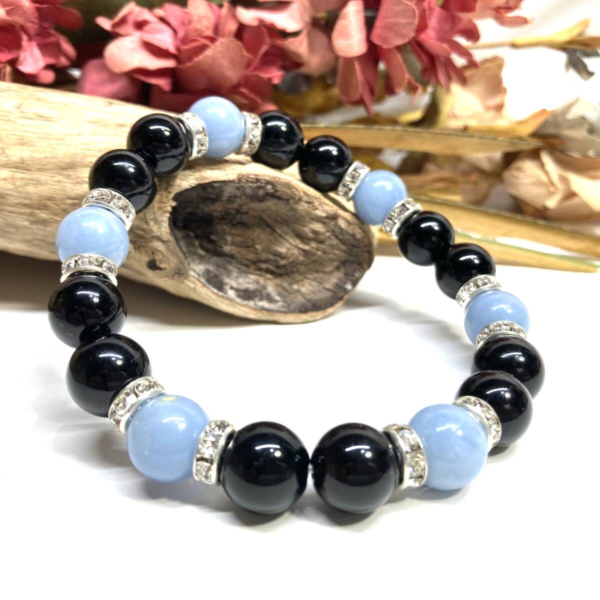 > モリオン&エンジェライト パワーストーン ブレスレット 天然石ブレス (シルバー) 10mm メンズ・レディース 厄除け 癒し ☆