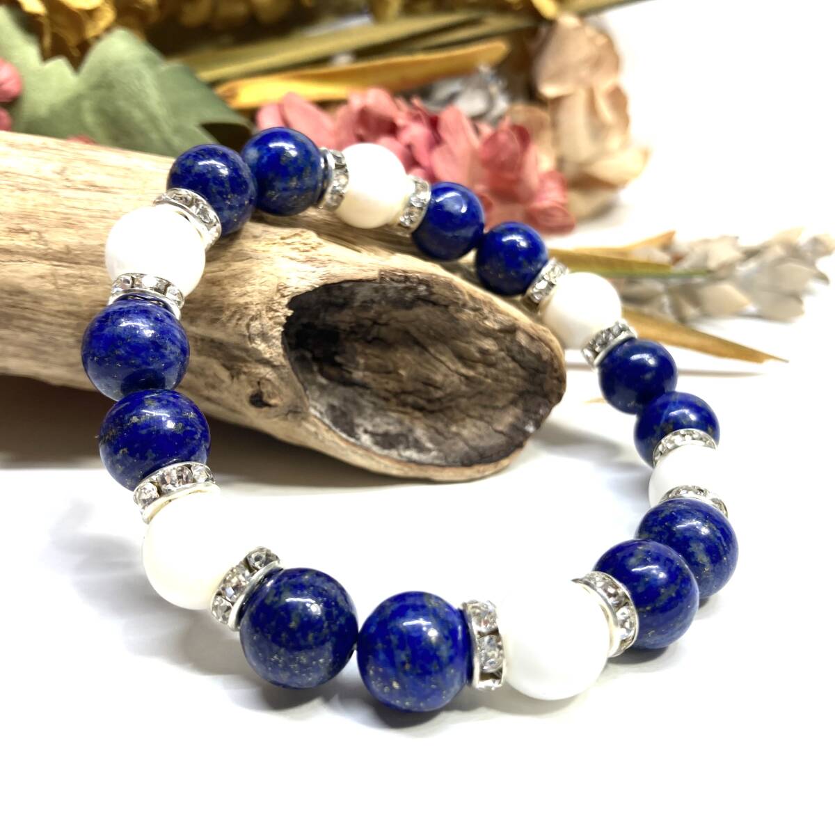 > ラピスラズリ&ホワイトオニキス パワーストーン ブレスレット 天然石ブレス (シルバー) 10mm メンズ・レディース 人間関係 ☆