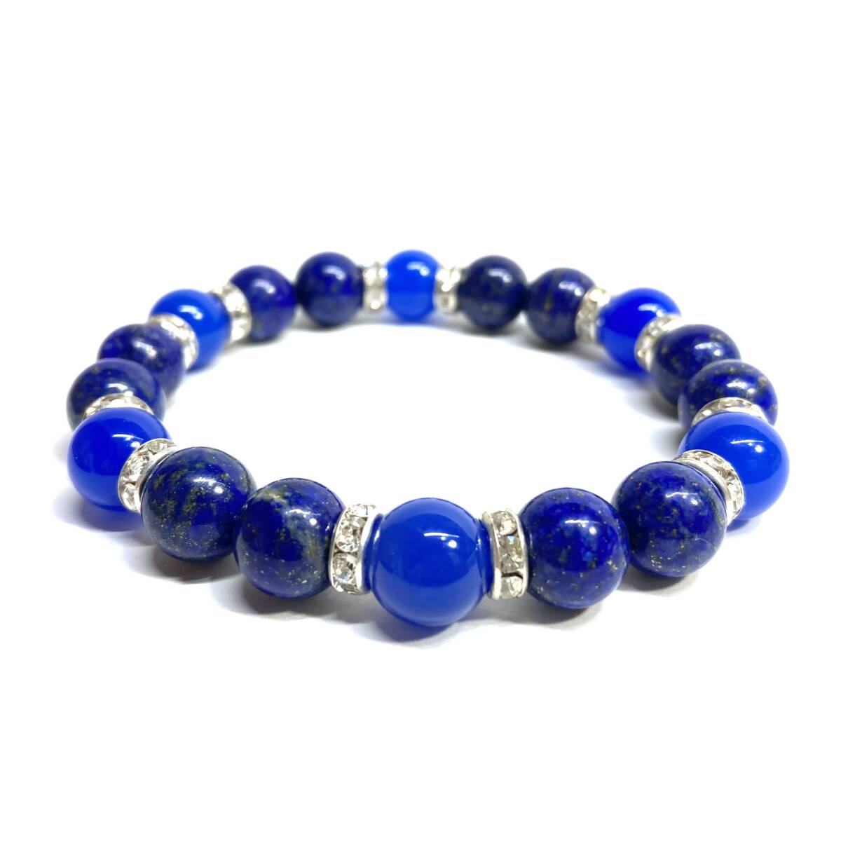 > ラピスラズリ&青瑪瑙 パワーストーン ブレスレット 天然石ブレス (シルバー) 10mm メンズ・レディース 勉強 受験 ☆