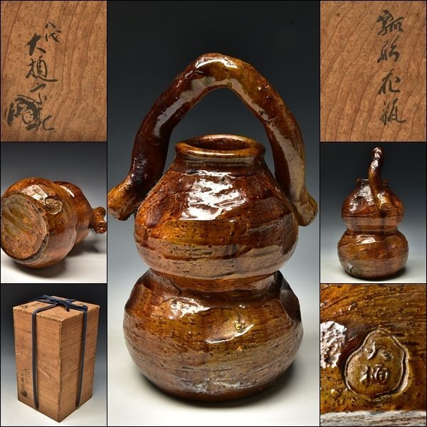 - SP6155 八代 大樋長左衛門 宗春 九代 極 瓢形 花入 花生 花瓶 共箱