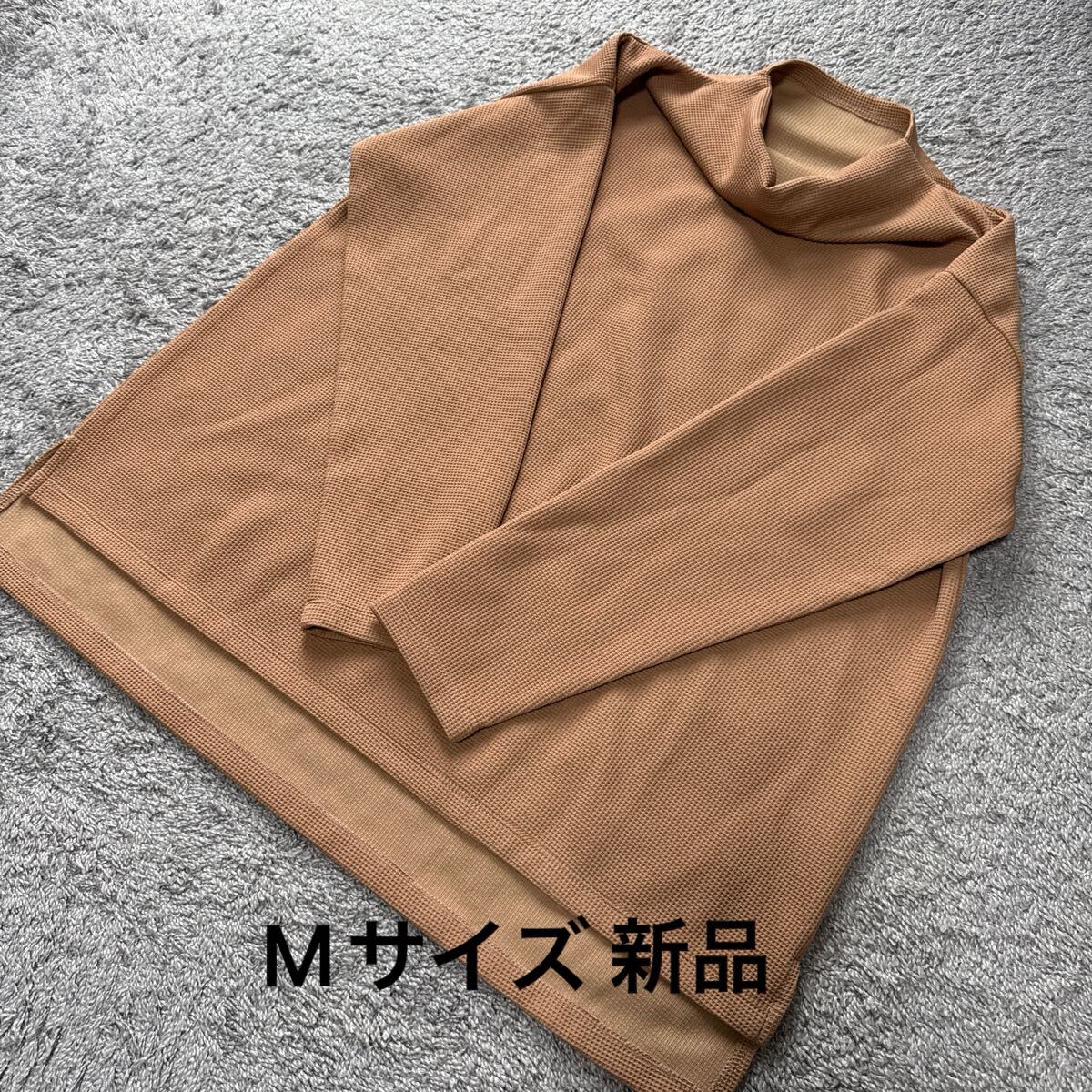 - ボトルネックワッフル長袖プルオーバーキャメルM★ゆうパケット配送可能★新品51