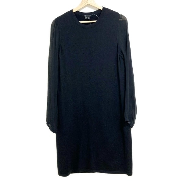 - セオリー theory サイズS - 黒 レディース クルーネック/長袖/ひざ丈/一部シルク/ニット ワンピース