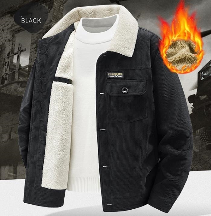 - 裏フリース ジャンパー ブルゾン コーデュロイ 新品・メンズ 裏ボア ワークジャケット アウター コート【2266A】黒 XL