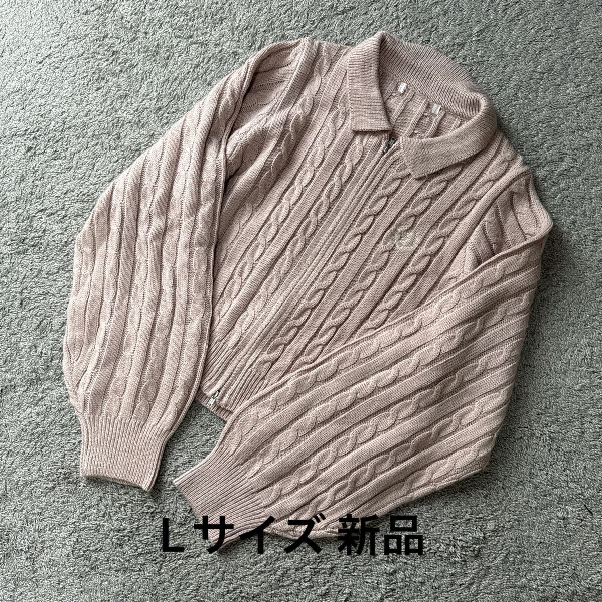 - ロゴ刺繍ケーブル編み襟付きジップニットカーディガンピンクL★ゆうパケット配送可能★新品51