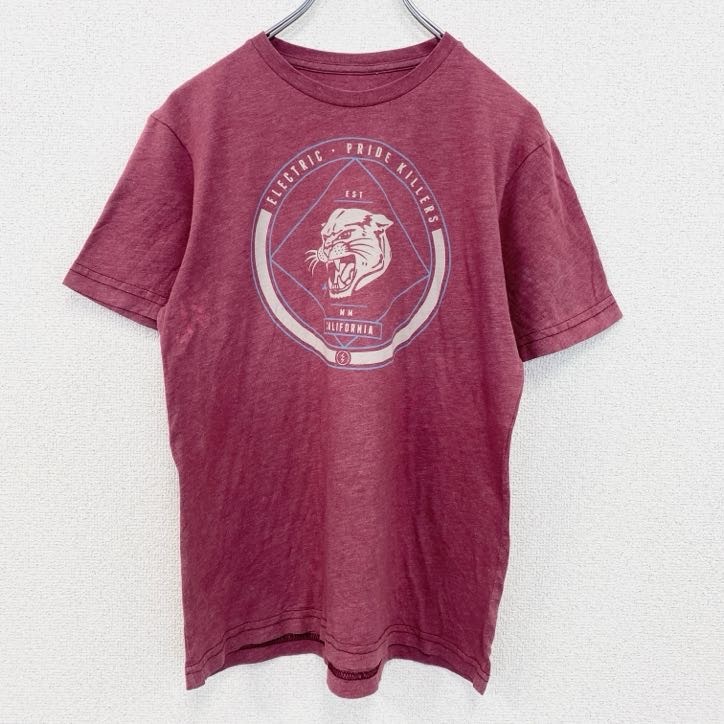 - 古着 used 半袖アニマルプリントTシャツ 虎 タイガー 赤 レッド クルーネック レトロデザイン Mサイズ