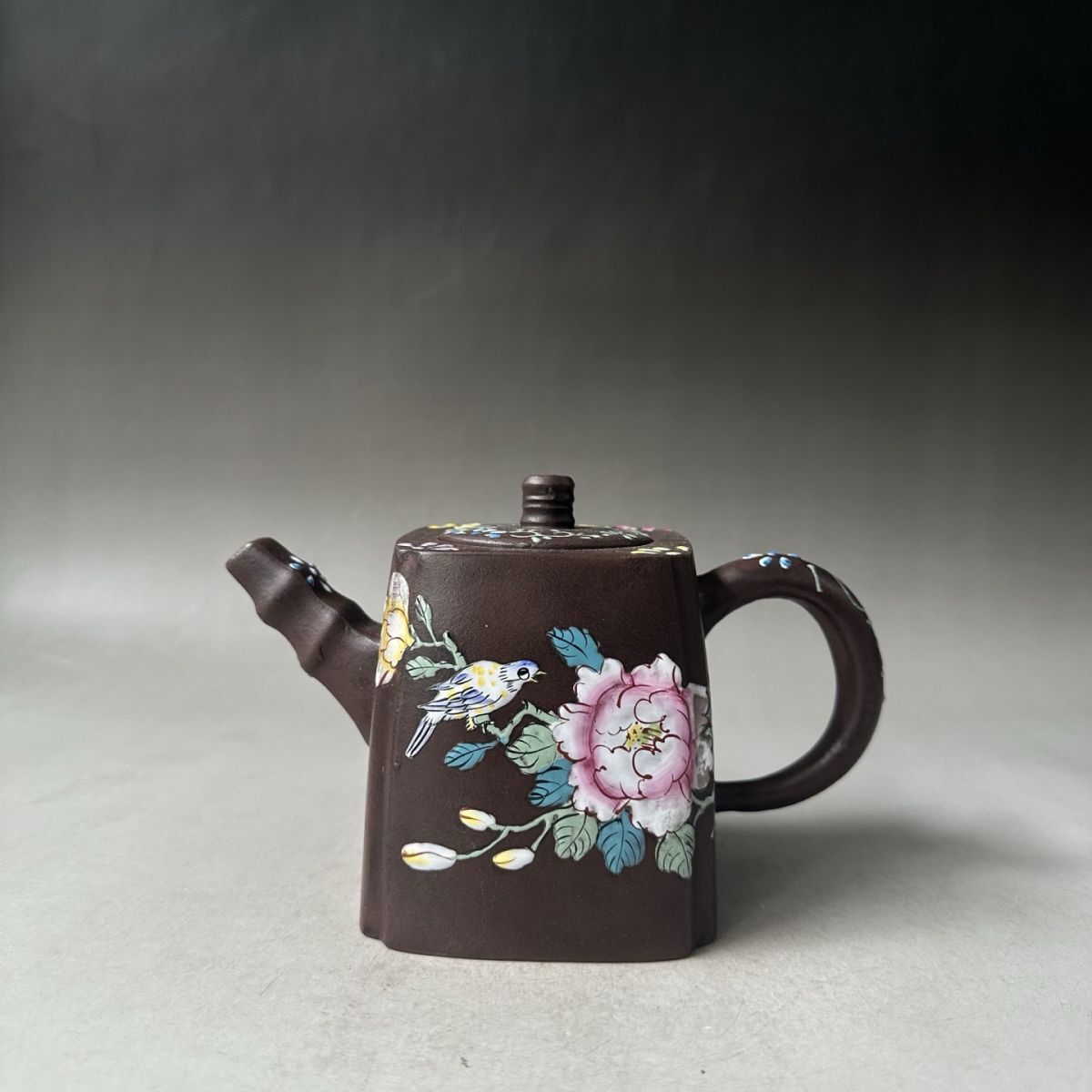 - 【永】旧家蔵出 楊鵬年款 品名【四方壺】朱泥 段泥 煎茶道具 急須 単孔口 唐物 紫砂壺 紫砂壷 茶壷 茶壷 極細工 古美術品 中国唐物 A12