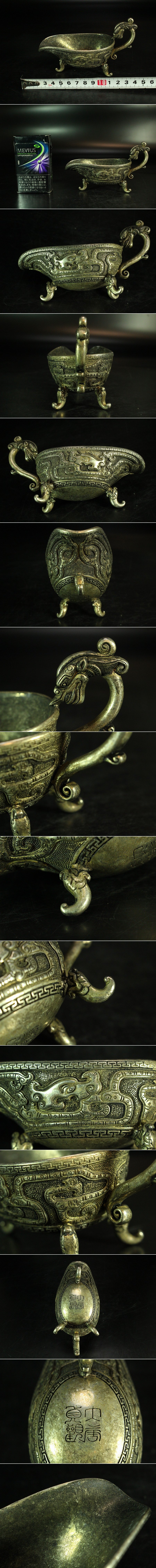 - 【金閣】中国美術 鍍銀 饕餮紋 三足 水注 唐物 旧家蔵出 送料無料(ZE418)