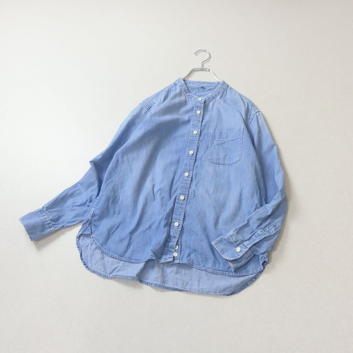 - 無印良品 MUJI バンドカラー シャンブレー ブラウス
