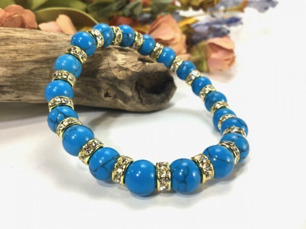 - ターコイズ パワーストーン ブレスレット 10mm メンズ・レディース (ロンデル:ゴールド) 開運 浄化 数珠ブレス♪