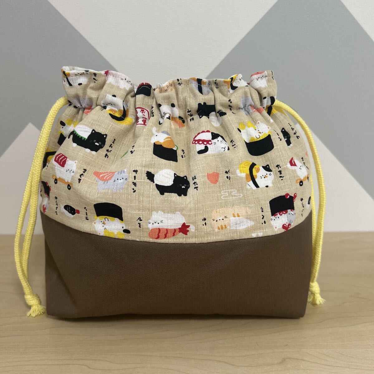 - お弁当袋 給食袋 巾着袋 ハンドメイド 入園準備 入学準備 ねこ 小物入れ 20×27×8