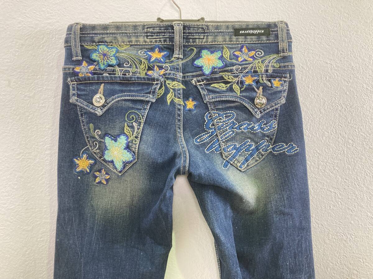 > ★GRASSHOPPER グラスホッパー★ 豪華 花柄 バック刺繍 W25 M相当 総柄 ストレッチデニム ジーンズ 細身 スキニー 激安 格安
