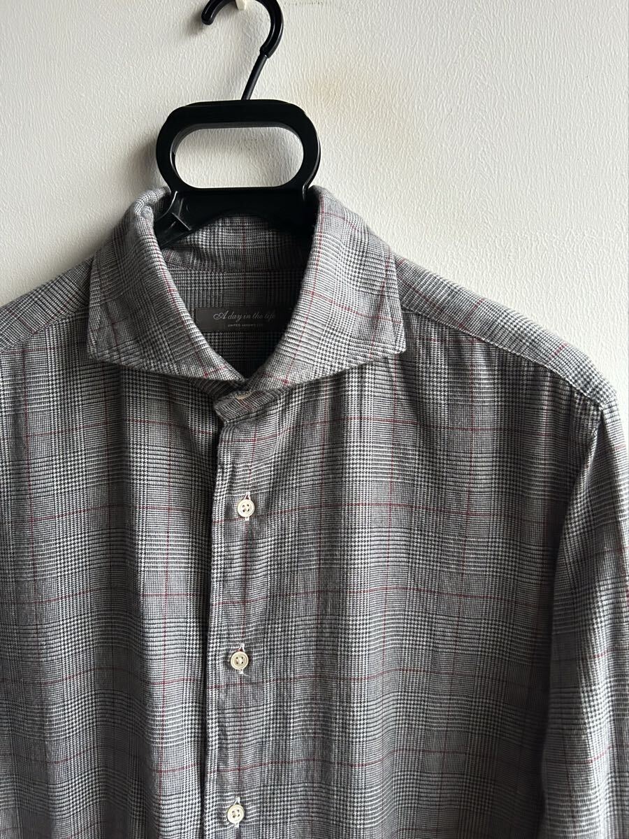 > 【美品】A day in the life UNITED ARROWS シャツ メンズ L グレンチェック グレー ホリゾンタルカラー ユナイテッド アローズ