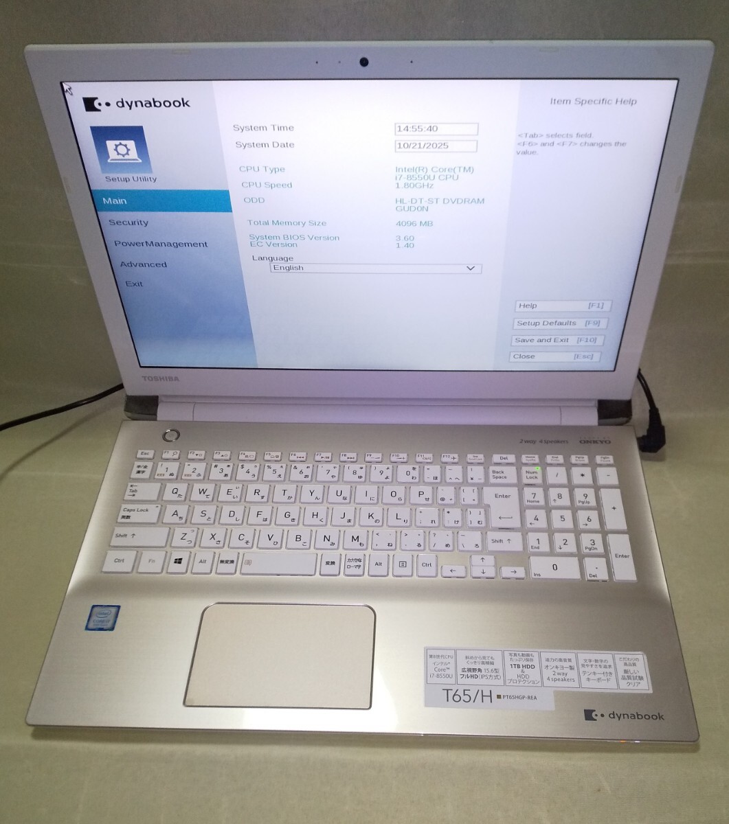 > 【Bios OK】 TOSHIBA dynabook T65/HG i7-8550U 4GB 第8世代 ③
