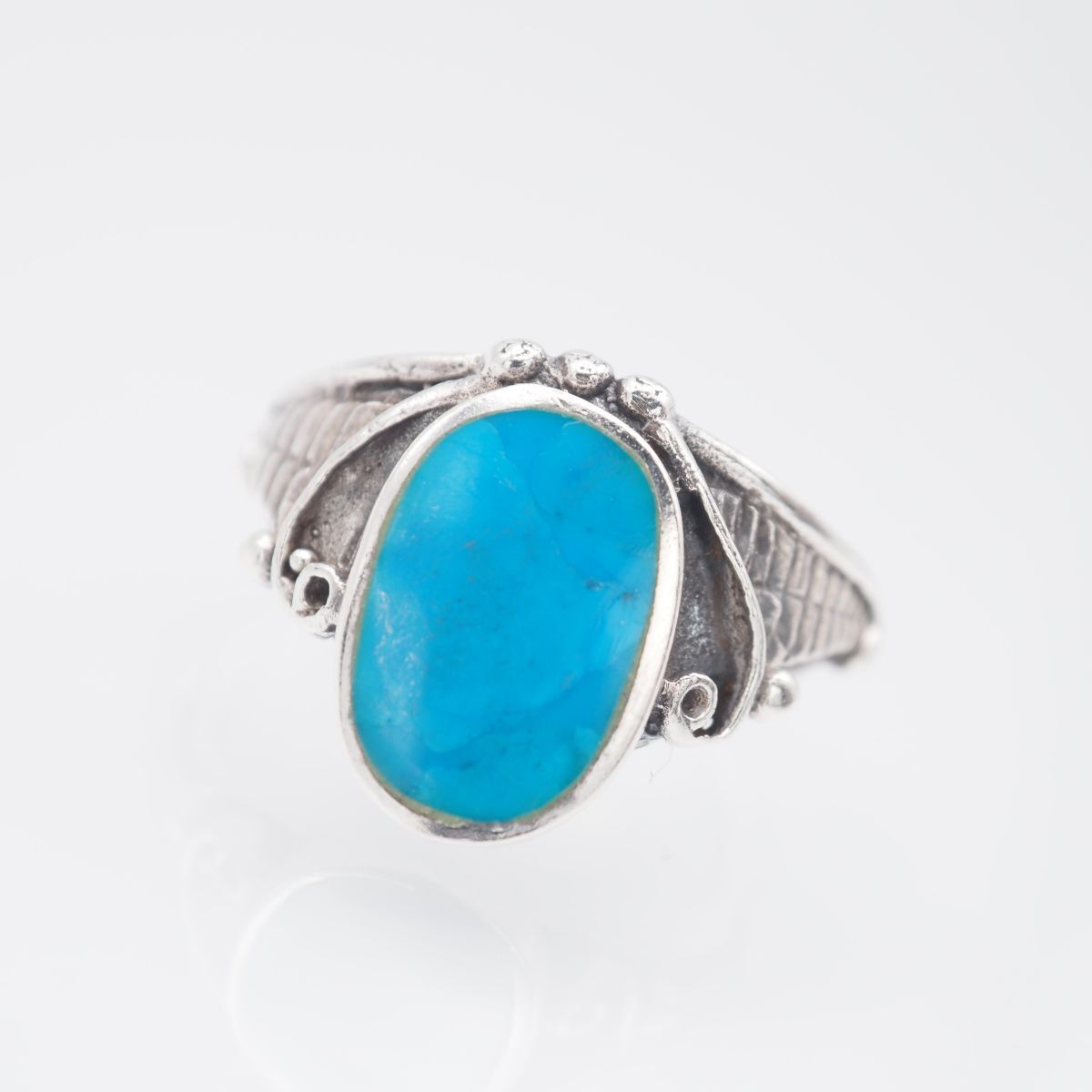 - G714 ターコイズ風 925刻印 リング インレイ デザイン シルバー 指輪 ヴィンテージ 11-12号