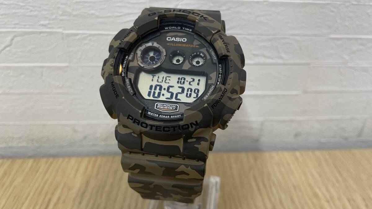 > 【美品】カシオ CASIO G-SHOCK 3427 GD-120CM カモフラ 迷彩 グリーンモデル メンズ 腕時計