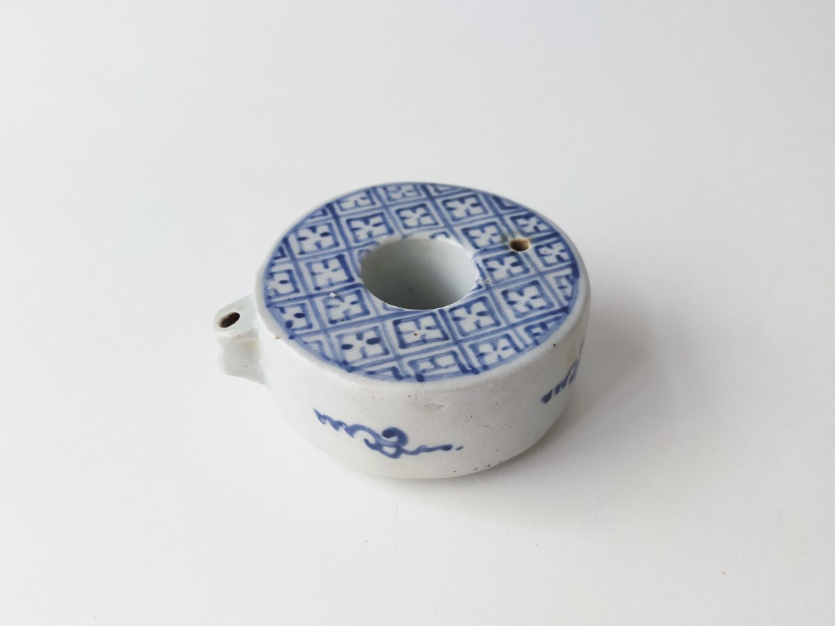 - 大正李朝? 李朝 染付 水滴 韓国美術 古美術 骨董品 書道具 白磁 円形 時代物 古道具 紋様 朝鮮美術 陶芸 工芸品 美術品 彫刻 陶磁器