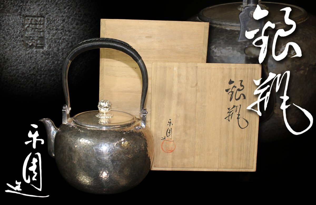 > 【江】純銀製 槌目打透かし彫花摘藤巻銀瓶 重量約695g 高さ22.5㎝ 純銀刻印 木箱 古美術品(茶道具茶器薬缶湯沸)AX1770 LVTwooi CUTDBvccp