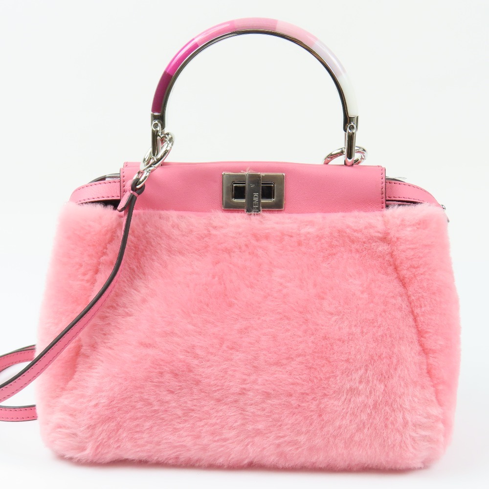 - 203286★1円スタート★FENDI フェンディ 新品同様美品 ピーカブー 2WAY ショルダーバッグ 斜め掛けOK ハンドバッグ ボア レザー ピンク