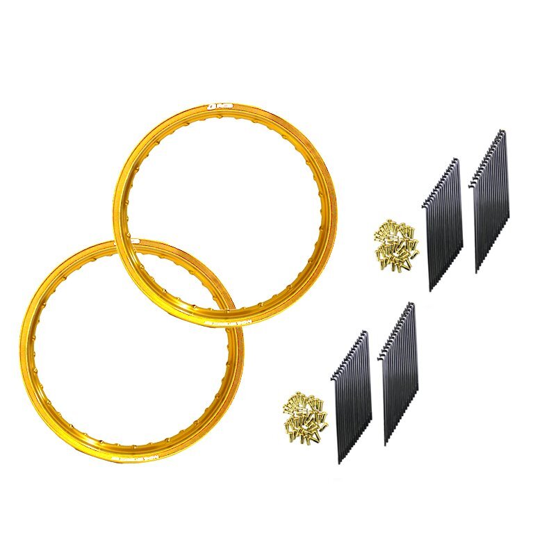 - リム スポーク OSAKI 汎用 9 × 157 & 9 ×153 リム スポーク 72本 & RCB 2.50 × 17 36穴 ゴールド アルミ ホイール 【前後セット】